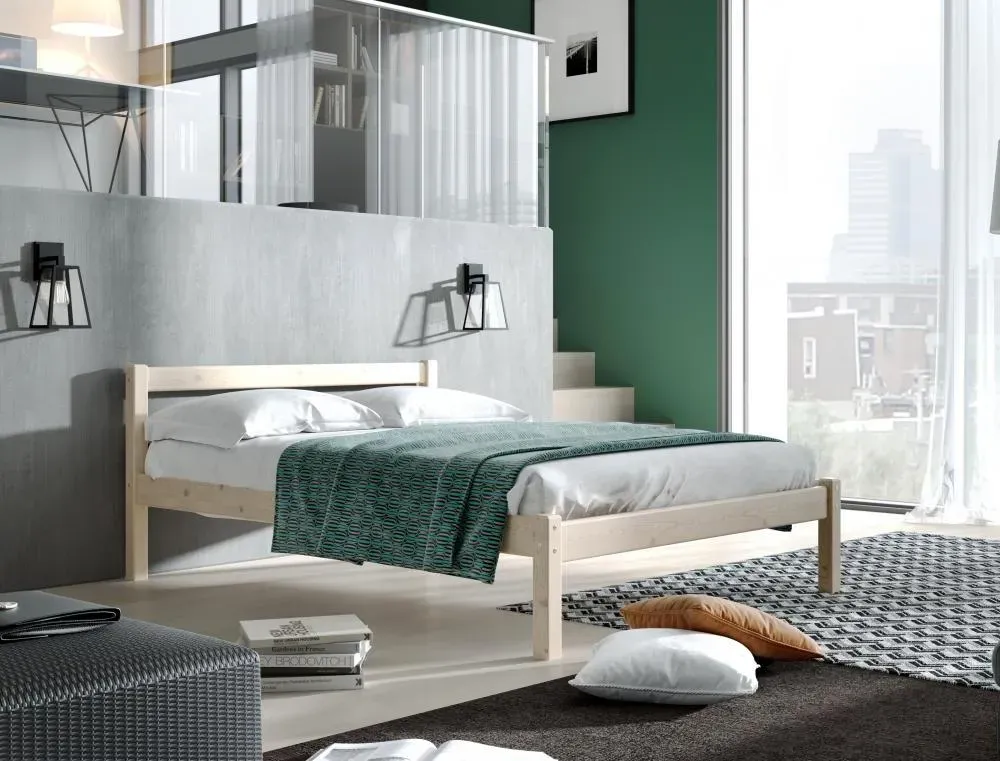 В такой квартире спальное место можно организовать вплотную к окну, сочетая конструкцию из массива на заказ с нейтральным декором.