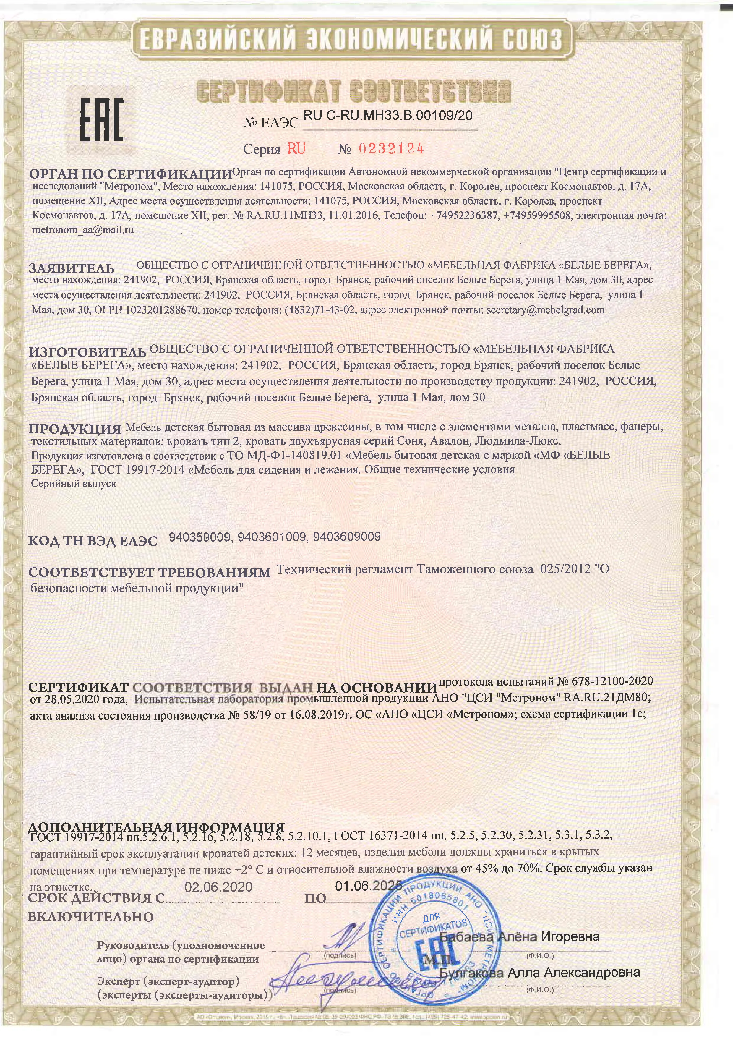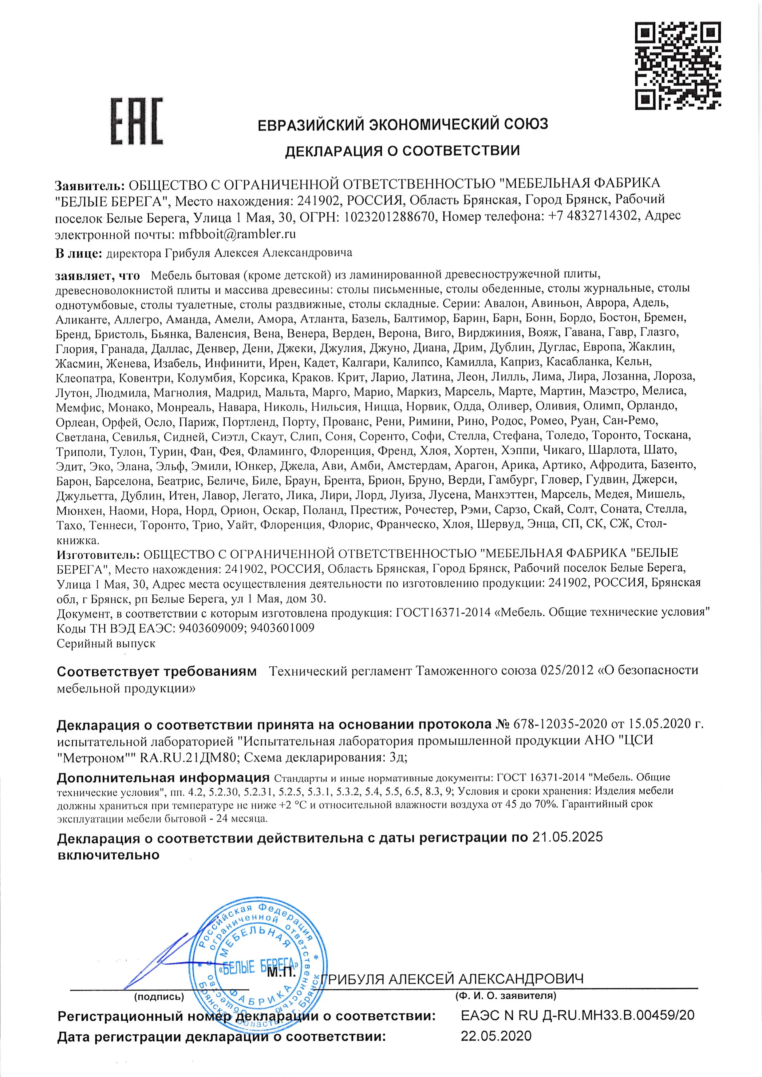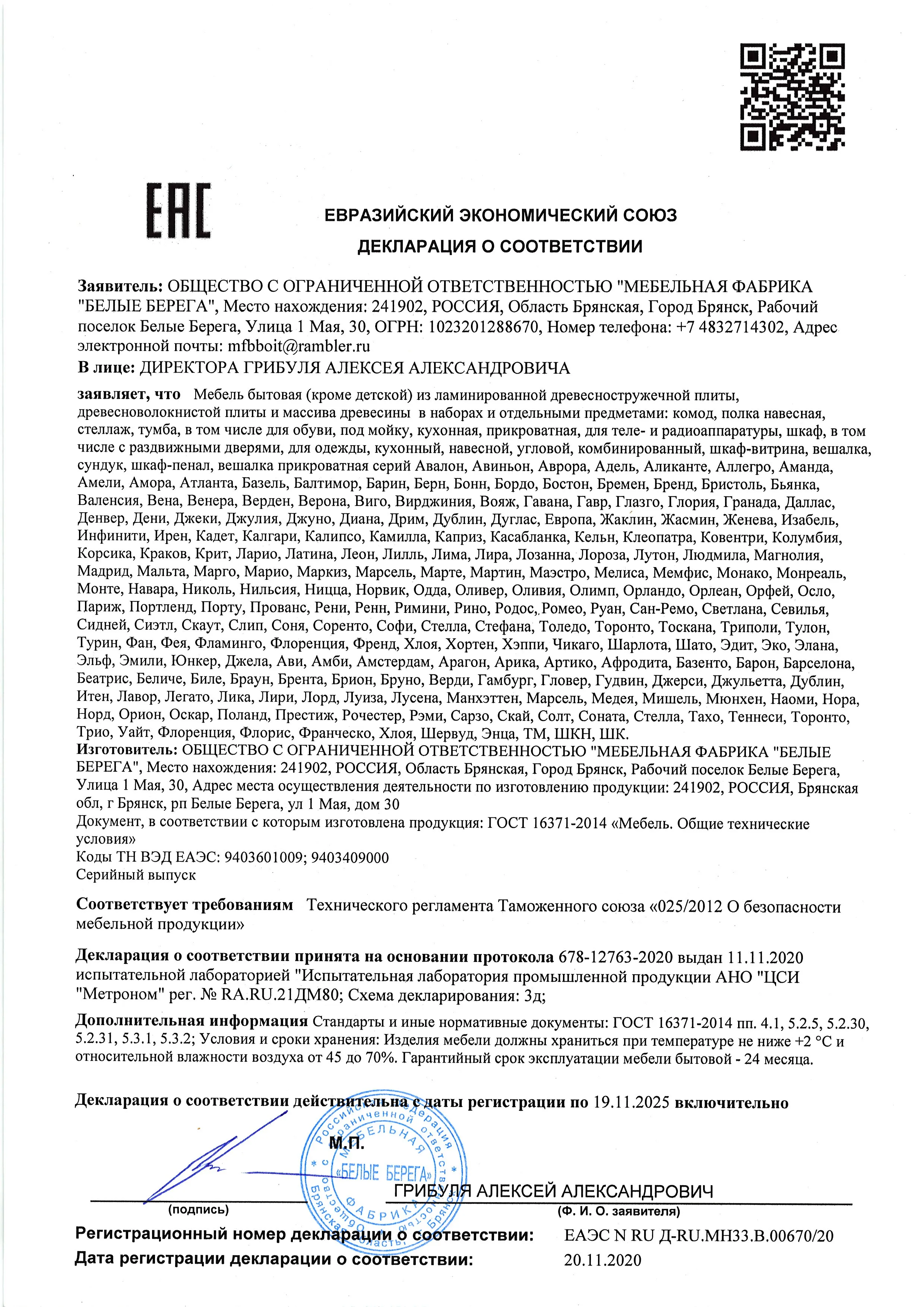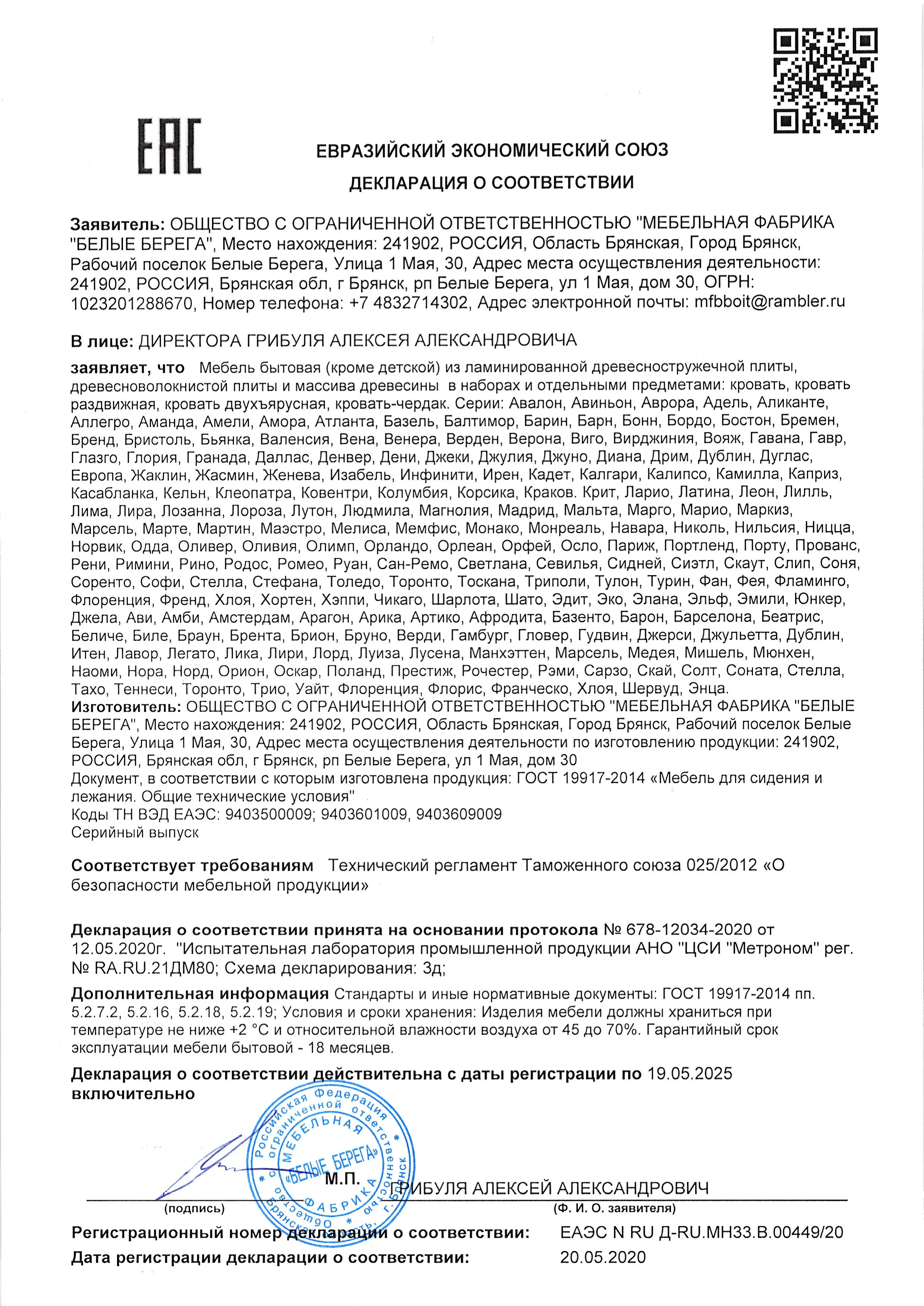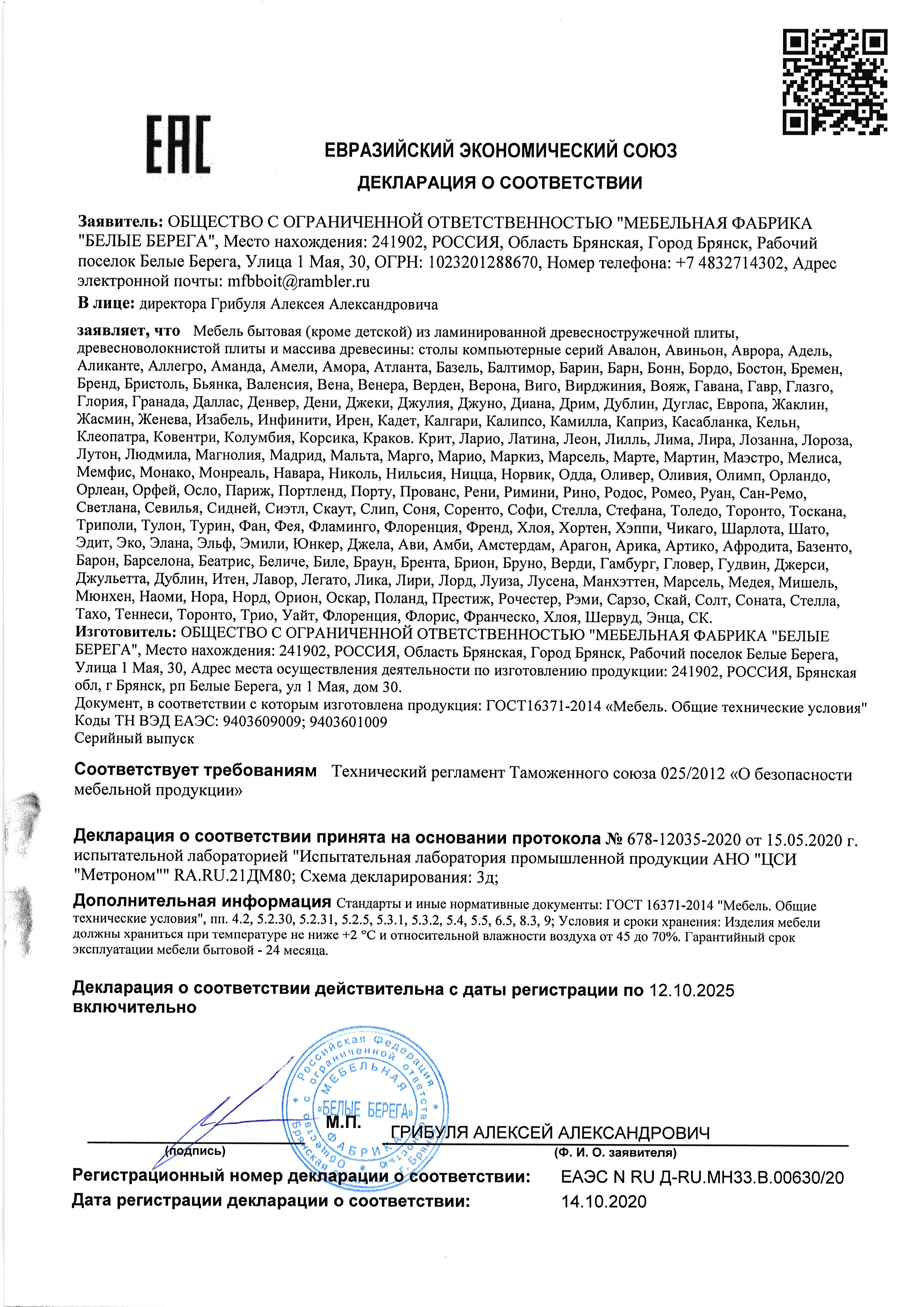 Декларация мебель для сидения и лежания 10-02-2025