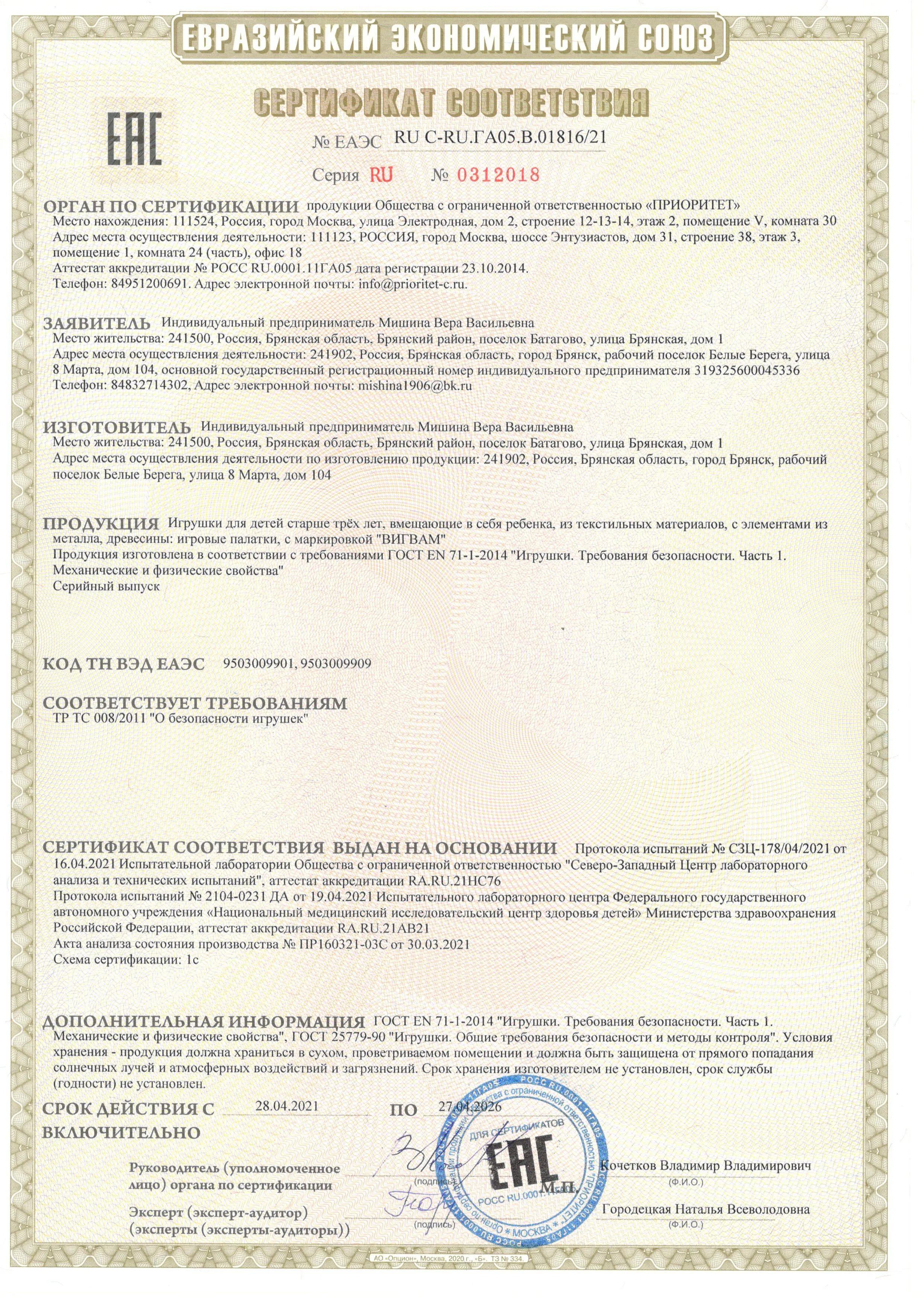 Сертификат вигвам 27-04-2026