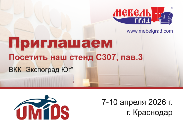 Наша компания Мебельград примет участие в 28-й Международной выставке мебели, предметов интерьера, материалов, комплектующих и оборудования для деревообрабатывающего и мебельного производства. Выставка пройдёт в ВКК «Экспоград Юг».