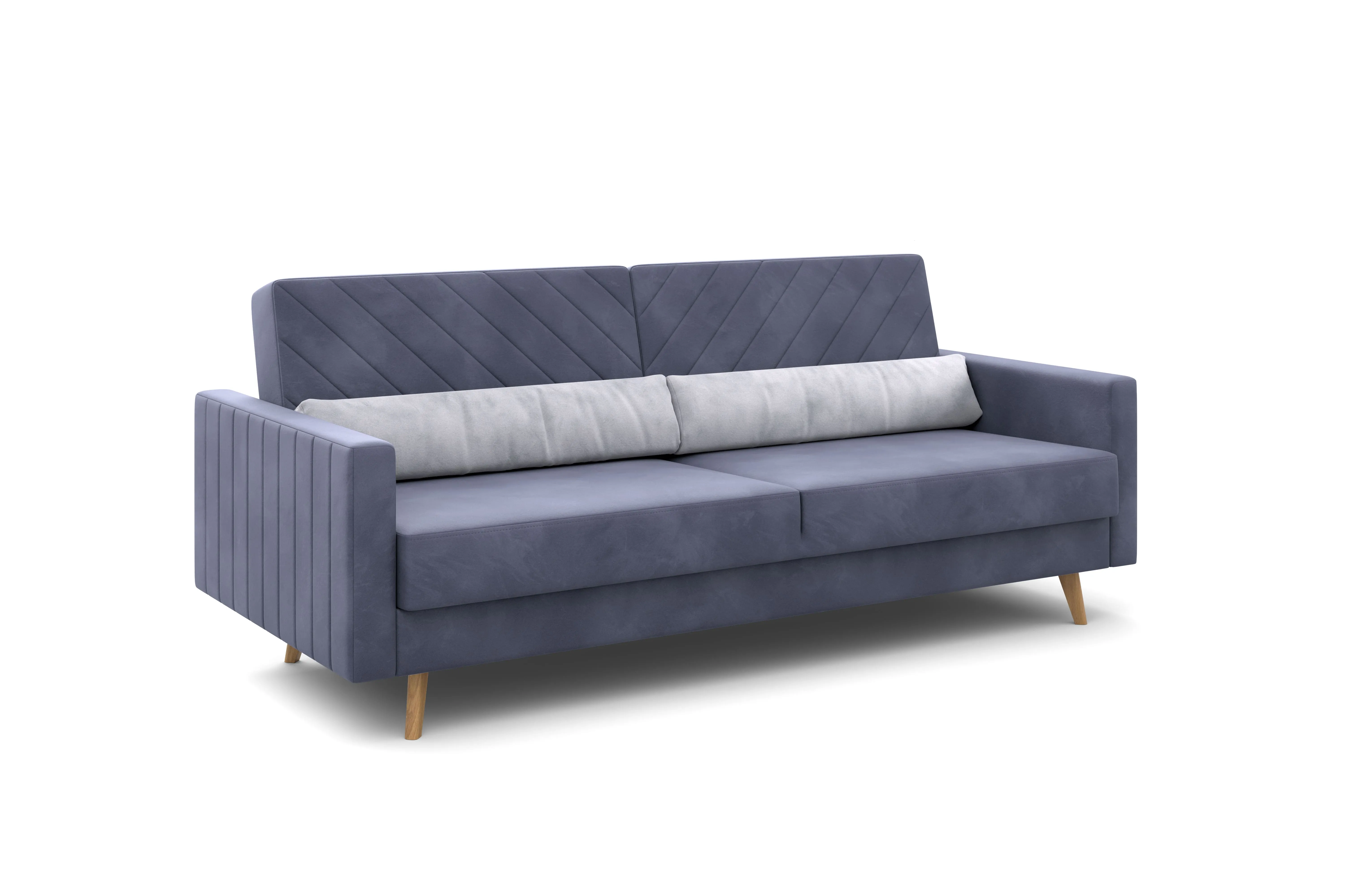 Обивка из велюра не только роскошно выглядит, но еще и практична в эксплуатации, а также имеет отличные показатели износоустойчивости.Высокие опоры из массива березы придают дивану визуальную лёгкость, декоративная отстрочка на подушках и боковинах придают приятный объем. Подушки из велюра контрастного цвета входят в комплект.